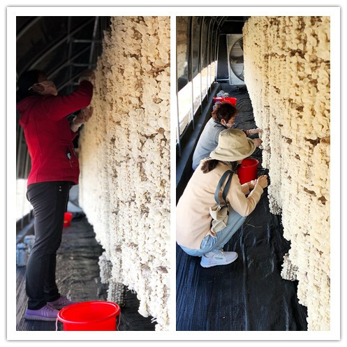 煙臺棲霞市亭口鎮(zhèn)衣家村山腰間的培育大棚里,一排排一行行玉木耳形如盤狀、晶瑩剔透、如玉似脂。連日來,大棚里人頭攢動,笑語盈盈,村民們滿懷喜悅采摘玉木耳,好不熱鬧。分裝車間里也是燈火通明,如火如荼,一派繁忙景象,村民熟練地打包、裝箱,近50萬斤玉木耳正通過線上電商、線下商超一箱箱送往全國各地。