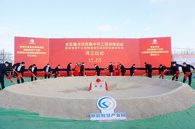 開(kāi)局就是決戰(zhàn),起步就是沖刺。1月16日上午,煙臺(tái)市舉行2022年重點(diǎn)項(xiàng)目集中開(kāi)工活動(dòng),在蓬萊區(qū)分會(huì)場(chǎng),新能智慧產(chǎn)業(yè)園智慧綠色高端家具板材一期項(xiàng)目奠基開(kāi)工。蓬萊區(qū)委書(shū)記林鈺濤、區(qū)長(zhǎng)王長(zhǎng)港及區(qū)委區(qū)政府其他領(lǐng)導(dǎo)班子成員出席活動(dòng)慶典,煙臺(tái)財(cái)金集團(tuán)總經(jīng)理李輝、煙臺(tái)新能智慧產(chǎn)業(yè)園董事長(zhǎng)吳軍紀(jì)、總經(jīng)理高春光及產(chǎn)業(yè)園全體員工共同參加慶典并見(jiàn)證項(xiàng)目奠基開(kāi)工。