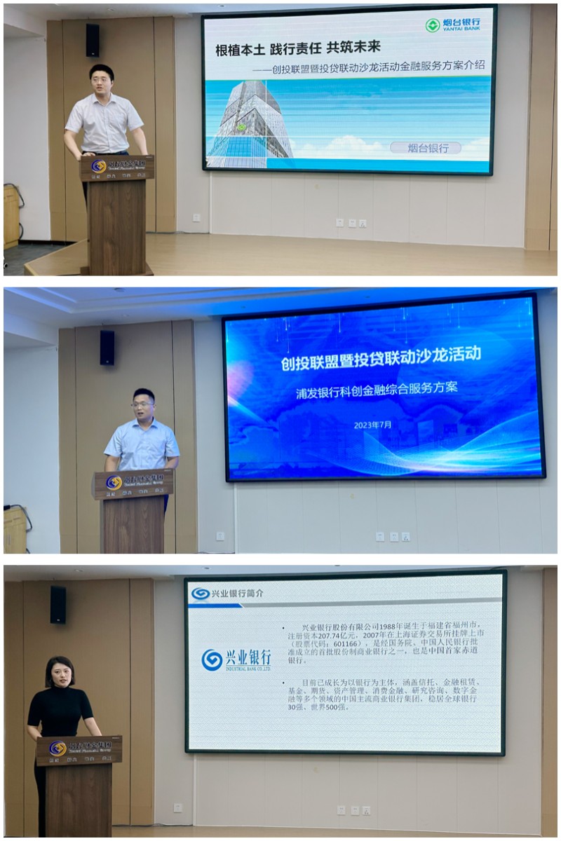 隨后,煙臺銀行、興業(yè)銀行、浦發(fā)銀行分別根據(jù)自身優(yōu)勢介紹了特色金融服務(wù)產(chǎn)品。各與會(huì)銀行表示,“投貸聯(lián)動(dòng)”機(jī)制與銀行支持新興產(chǎn)業(yè)和優(yōu)質(zhì)企業(yè),推動(dòng)綠色金融、科技金融的發(fā)展目標(biāo)“不謀而合”。